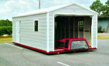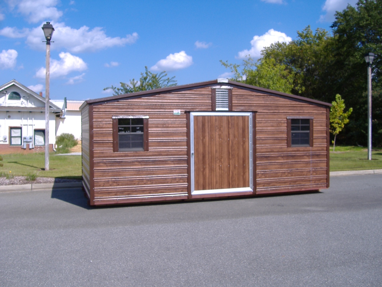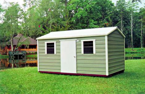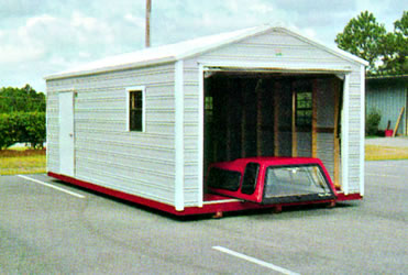 The Eve has the same type gable as the New-Type-eve, however a few upgrades are added. Rather than the basic trim as the New-Type-Eve, this unit has a boxed trim which gives it a little more decorative look. This unit is standard with a 42" mobile home type door, however, as with all of our buildings, you can specify any type of door you desire. In the state of Florida, all buildings are standard with a 4' aluminum door and various sizes of mobile home type doors available upon request.